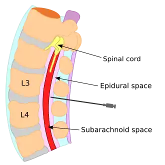 - ↑ Binder, DK; Dillon, WP; Fishman, RA; Schmidt, MH (2002). "Intrathecal saline infusion in the treatment of obtundation associated with spontaneous intracranial hypotension: technical case report". Neurosurgery. 51 (3): 830–6, discussion 836–7. doi:10.1097/00006123-200209000-00045. PMID 12188967. S2CID 9552160.