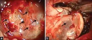 - ↑ Stenzel, M.; Preuss, S.; Orloff, L.; Jecker, P.; Mann, W. (2005). "Cerebrospinal Fluid Leaks of Temporal Bone Origin: Etiology and Management". ORL; Journal for Oto-Rhino-Laryngology and Its Related Specialties. 67 (1): 51–5. doi:10.1159/000084306. PMID 15753623. S2CID 24434779.