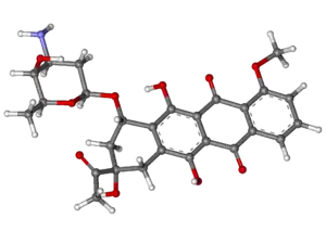 Daunorubicin, also known as daunomycin, is a chemotherapy medication used to treat cancer.[2] Specifically it is used for acute myeloid leukemia (AML), acute lymphocytic leukemia (ALL), chronic myelogenous leukemia (CML), and Kaposi's sarcoma.[2] It is used by injection into a vein.[2] A liposomal formulation known as liposomal daunorubicin also exists.[2]