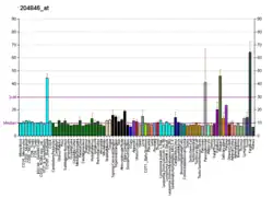 A cis-regulatory element called the GAIT element is involved in the selective translational silencing of the Ceruloplasmin transcript.[13] The silencing requires binding of a cytosolic inhibitor complex called IFN-gamma-activated inhibitor of translation (GAIT) to the GAIT element.[14]