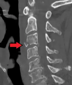 - 1 2 Raniga SB, Menon V, Al Muzahmi KS, Butt S (June 2014). "MDCT of acute subaxial cervical spine trauma: a mechanism-based approach". Insights into Imaging. 5 (3): 321–338. doi:10.1007/s13244-014-0311-y. PMC 4035495. PMID 24554380.