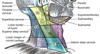 The American Academy of Otolaryngology system (2002) divides the nodes as follows:[1][2][3]