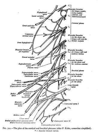 - 1 2 3 4 Waxenbaum, Joshua A.; Reddy, Vamsi; Bordoni, Bruno (2021), "Anatomy, Head and Neck, Cervical Nerves", StatPearls, Treasure Island (FL): StatPearls Publishing, PMID 30844163, retrieved 2021-09-22