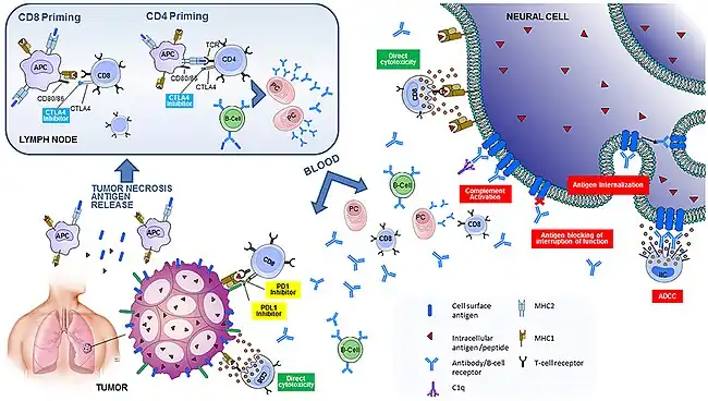 - ↑ Valencia-Sanchez, Cristina; Zekeridou, Anastasia (2021). "Paraneoplastic Neurological Syndromes and Beyond Emerging With the Introduction of Immune Checkpoint Inhibitor Cancer Immunotherapy". Frontiers in Neurology. 12. doi:10.3389/fneur.2021.642800/full. ISSN 1664-2295.