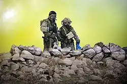 Chemical warfare (CW) involves using the toxic properties of chemical substances as weapons.[1][2] This type of warfare is distinct from nuclear warfare, biological warfare and radiological warfare, which together make up CBRN, the military acronym for chemical, biological, radiological, and nuclear (warfare or weapons), all of which are considered "weapons of mass destruction" (WMDs), a term that contrasts with conventional weapons.[3]