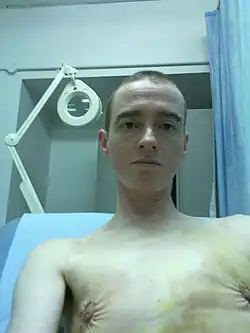 ![]() Transgender man with healed double incision chest reconstruction, 2020 | |