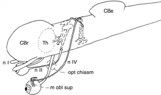 - ↑ de Lussanet, M.H.E.; Osse, J.W.M. (2012). "An ancestral axial twist explains the contralateral forebain and the optic chiasm in vertebrates". Animal Biology. 62 (2): 193–216. arXiv:1003.1872. doi:10.1163/157075611X617102.