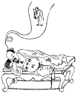 Illustration of a Daoist engaged in "sleep practice" in the Chifeng sui.[1]