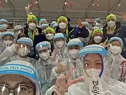 By 16 February 2020, 217 teams of a total of 25,633 medical workers from across China went to Wuhan and other cities in Hubei to help open up more facilities and treat patients. A total of 14 temporary hospitals were constructed in China in total, but all were reported to have closed after the crisis was determined be under control on 10 March 2020.[33] On 31 March, the Chinese government announced that large-scale domestic transmission of COVID-19 had been stopped.[4]