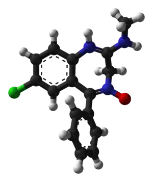 Chlordiazepoxide acts on benzodiazepine allosteric sites that are part of the GABAA receptor/ion-channel complex and this results in an increased binding of the inhibitory neurotransmitter GABA to the GABAA receptor thereby producing inhibitory effects on the central nervous system and body similar to the effects of other benzodiazepines.[24] Chlordiazepoxide is anticonvulsant.[25] There is preferential storage of chlordiazepoxide in some organs including the heart of the neonate. Absorption by any administered route and the risk of accumulation is significantly increased in the neonate. The withdrawal of chlordiazepoxide during pregnancy and breast feeding is recommended, as chlordiazepoxide rapidly crosses the placenta and also is excreted in breast milk.[26] Chlordiazepoxide also decreases prolactin release in rats.[27] Benzodiazepines act via micromolar benzodiazepine binding sites as Ca2+ channel blockers and significantly inhibit depolarization-sensitive Calcium uptake in animal nerve terminal preparations.[28] Chlordiazepoxide inhibits acetylcholine release in mouse hippocampal synaptosomes in vivo. This has been found by measuring sodium-dependent high affinity choline uptake in vitro after pretreatment of the mice in vivo with chlordiazepoxide. This may play a role in chlordiazepoxide's anticonvulsant properties.[29]