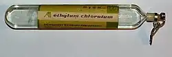 Chloroethane, commonly known as ethyl chloride, is a chemical compound with chemical formula CH3CH2Cl, once widely used in producing tetraethyllead, a gasoline additive. It is a colorless, flammable gas or refrigerated liquid with a faintly sweet odor.[11]