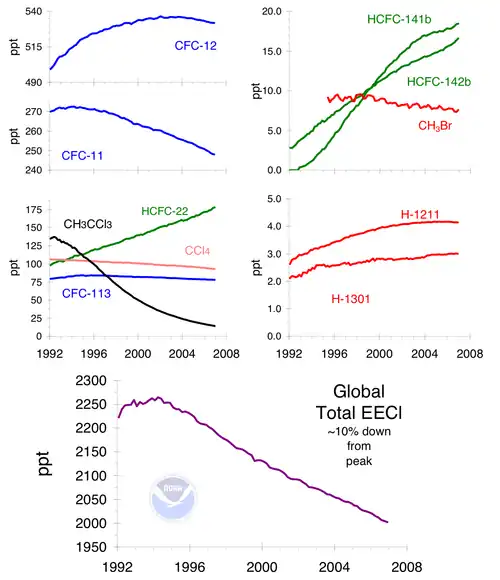 - ↑ "NOAA Global Monitoring Laboratory - Halocarbons and other Atmospheric Trace Species". gml.noaa.gov. Retrieved 12 December 2023.
