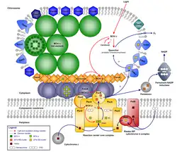 - 1 2 3 4 Orf GS, Blankenship RE (October 2013). "Chlorosome antenna complexes from green photosynthetic bacteria". Photosynthesis Research. 116 (2–3): 315–31. doi:10.1007/s11120-013-9869-3. PMID 23761131. S2CID 8613450.