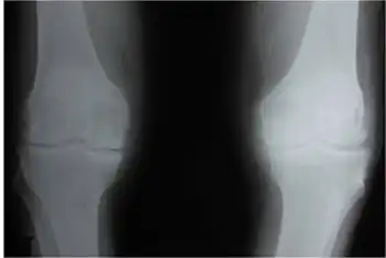 | X-ray of a knee with chondrocalcinosis | |