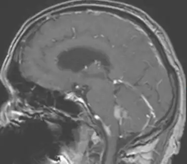 {{cite journal}}: CS1 maint: unflagged free DOI (link) - ↑ 8.0 8.1 Meyers SP, Khademian ZP, Chuang SH, Pollack IF, Korones DN, Zimmerman RA (September 2004). "Choroid plexus carcinomas in children: MRI features and patient outcomes". Neuroradiology. 46 (9): 770–780. doi:10.1007/s00234-004-1238-7. PMID 15309348. S2CID 22235664.