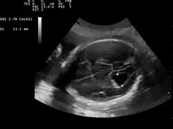 8. Dagklis, T.; Plasencia, W.; Maiz, N.; Duarte, L.; Nicolaides, K. H. (February 2008). "Choroid plexus cyst, intracardiac echogenic focus, hyperechogenic bowel and hydronephrosis in screening for trisomy 21 at 11 + 0 to 13 + 6 weeks". Ultrasound in Obstetrics & Gynecology. 31 (2): 132–135. doi:10.1002/uog.5224. PMID 18085527.