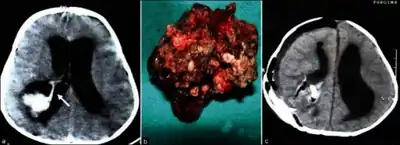- ↑ McEvoy AW, Harding BN, Phipps KP, Ellison DW, Elsmore AJ, Thompson D, et al. (April 2000). "Management of choroid plexus tumours in children: 20 years experience at a single neurosurgical centre". Pediatric Neurosurgery. 32 (4): 192–199. doi:10.1159/000028933. PMID 10940770.