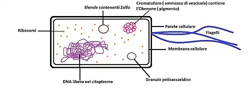 The Chromatiaceae are one of the two families of purple sulfur bacteria, together with the Ectothiorhodospiraceae. They belong to the order Chromatiales of the class Gammaproteobacteria, which is composed by unicellular Gram-negative organisms.[2][3] Most of the species are photolithoautotrophs and conduct an anoxygenic photosynthesis, but there are also representatives capable of growing under dark and/or microaerobic conditions as either chemolithoautotrophs or chemoorganoheterotrophs.[3][4]