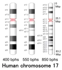 - ↑ "Chromosome 17: Chromosome summary - Homo sapiens". Ensembl Release 88. 2017-03-29. Retrieved 2017-05-19.
