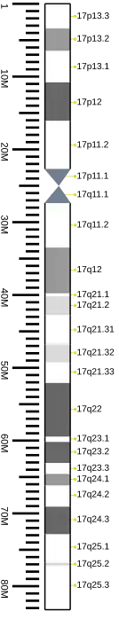 - ↑ "Human chromosome 17: entries, gene names and cross-references to MIM". UniProt. 2024-10-02. Retrieved 2024-10-06.