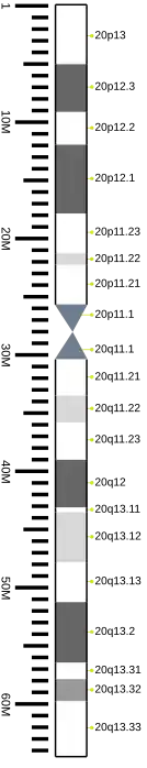 - ↑ "Human chromosome 20: entries, gene names and cross-references to MIM". UniProt. 2018-02-28. Retrieved 2018-03-16.