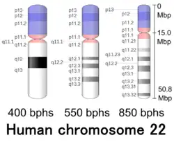 - ↑ "Chromosome 22: Chromosome summary - Homo sapiens". Ensembl Release 88. 29 March 2017. Retrieved 19 May 2017.