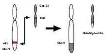 Diagram showing the translocation found in the Philadelphia chromosome