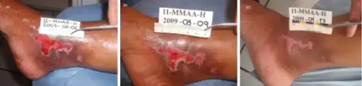 - ↑ 38.0 38.1 38.2 Brem H, Kirsner RS, Falanga V (July 2004). "Protocol for the successful treatment of venous ulcers". American Journal of Surgery. 188 (1A Suppl): 1–8. doi:10.1016/S0002-9610(03)00284-8. PMID 15223495.