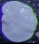 Cibicidoides tests are generally transparent/translucent in color, where well preserved, allowing the color of the single celled organic matter to partially show from inside the test. The color of a test is also a primary indicator as to whether or not a Cibicidoides is considered dead or alive, as the organic matter will decay rapidly after death, leaving only the empty translucent test behind.[5]
