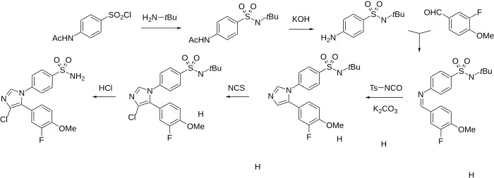 - ↑ Almansa, Carmen; Alfón, José; de Arriba, Alberto F.; Cavalcanti, Fernando L.; Escamilla, Ignasi; Gómez, Luis A.; Miralles, Agustí; Soliva, Robert; Bartrolí, Javier; Carceller, Elena; Merlos, Manuel; García-Rafanell, Julián (2003). "Synthesis and Structure−Activity Relationship of a New Series of COX-2 Selective Inhibitors: 1,5-Diarylimidazoles". Journal of Medicinal Chemistry. 46 (16): 3463–3475. doi:10.1021/jm030765s. ISSN 0022-2623. PMID 12877584.