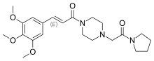 - ↑ Cameron BD, Chasseaud LF, Hawkins DR, Taylor T (July 1976). "The metabolic fate of the coronary vasodilator 4-(3,4,5-Trimethoxycinnamoyl)-1-(N-pyrrolidinocarbonylmethyl)piperazine (cinepazide) in the rat, dog and man". Xenobiotica; the Fate of Foreign Compounds in Biological Systems. 6 (7): 441–55. doi:10.3109/00498257609151657. PMID 997590.