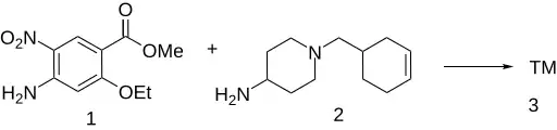 Cinitapride is the amide formed by reacting methyl 4-amino-2-ethoxy-5-nitrobenzoate (1) with the 4-aminopiperidine derivative (2).[5][6]