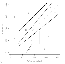 - Region D: the new meter's values are so inaccurate that it would fail to detect potentially dangerous hypoglycemia or hyperglycemia; and