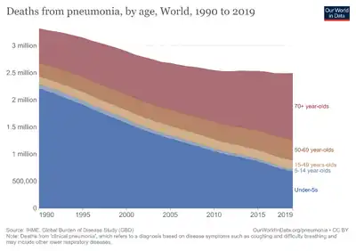 - ↑ Scotta, Marcelo C.; Marostica, Paulo J.C.; Stein, Renato T. (2019). "Pneumonia in Children". Kendig's Disorders of the Respiratory Tract in Children. Elsevier. p. 435.e4. doi:10.1016/b978-0-323-44887-1.00025-0. ISBN 978-0-323-44887-1. S2CID 81700501.
