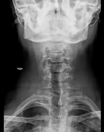 Clay-shoveler's fracture is a stable fracture through the spinous process of a vertebra occurring at any of the lower cervical or upper thoracic vertebrae, classically at C6 or C7.[1] In Australia in the 1930s, men digging deep ditches tossed clay 10 to 15 feet above their heads using long handled shovels.[2] Instead of separating, the sticky clay would sometimes stick to the shovel. At the top of the arc of motion, with the arms extended, the worker may hear a pop and feel a sudden pain between the shoulder blades, unable to continue working.[3][4] The mechanism of injury is believed to be secondary to muscle pull and reflex with force transmission through the supraspinous ligaments. The tremendous force pulls on the spinous process producing an avulsion fracture. The fracture is diagnosed by plain film examination.