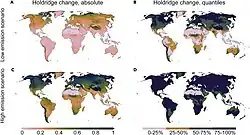 - ↑ Warren, R.; Price, J.; VanDerWal, J.; Cornelius, S.; Sohl, H. (March 14, 2018). "The implications of the United Nations Paris Agreement on climate change for globally significant biodiversity areas". Climatic Change. 147 (3–4): 395–409. Bibcode:2018ClCh..147..395W. doi:10.1007/s10584-018-2158-6. S2CID 158490978.