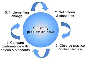 • Standards-based audit – A cycle which involves defining standards, collecting data to measure current practice against those standards, and implementing any changes deemed necessary.