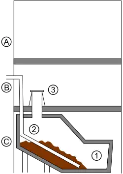 A Clivus Multrum composting toilet with separate, inclined compost compartment