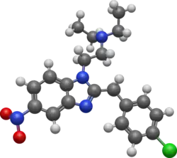Clonitazene is an opioid analgesic of approximately three times the potency of morphine.[2] It is in the nitazene family of benzimidazoles related to etonitazene, an opioid of significantly higher potency. Clonitazene is not currently marketed. It is a controlled substance; in the United States it is a Schedule I Narcotic controlled substance with a DEA ACSCN of 9612 and an established manufacturing quota of 25 grams for 2022.