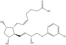 Cloprostenol is a synthetic analogue of prostaglandin F2α (PGF2α).[1] It is a potent luteolytic agent; this means that, within hours of administration, it causes the corpus luteum to stop production of progesterone, and to reduce in size over several days.[1] This effect is used in animals to induce estrus and to cause abortion.[2]