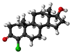 Clostebol is a weak AAS with potential use as a performance enhancing drug. It is currently banned by the World Anti-Doping Agency.[3] Chlorodehydromethyltestosterone (Oral Turinabol), combining the chemical structures of clostebol and metandienone, was widely used in the East German state-sponsored doping program.[4]