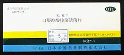 | C. butyricum MIYAIRI 588 tablets produced by Miyarisan Pharmaceutical, Tokyo, Japan (Chinese OTC packaging). | |