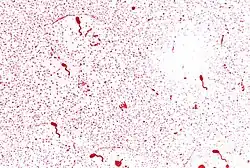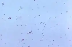 Clostridium tertium is a Gram-positive, spore forming, anaerobic bacillus found in the soil and the gut of many animal species, including humans.[3] C. tertium distinguishes itself from other clostridia as a non-toxin producing, aerotolerant, non-histotoxic and non-lipolytic species.[3] Aerotolerant strains of anaerobic bacteria can tolerate oxygen and exhibit growth to some extent in the presence of oxygen.[5] The aerotolerance of C. tertium can lead to its misidentification as Bacillus spp. or Lactobacillus spp.[2] A negative catalase test is an easy tool to differentiate C. tertium from Bacillus spp., which are catalase positive.[2] Also, C. tertium only forms spores anaerobically, as opposed to Bacillus spp., which sporulates aerobically.[2] Other distinct characteristics are its large size (1.5 x 10 micrometers) and its unusual "square" morphology on Gram stained smear.[6]