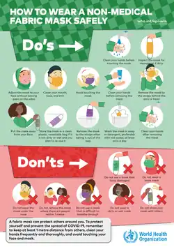 - ↑ "Advice on the use of masks in the context of COVID-19: Interim guidance". World health Organization. June 5, 2020. p. 7. Retrieved August 21, 2020.