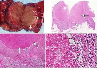 5. Caruso RA, Branca G, Fedele F, Irato E, Finocchiaro G, Parisi A, et al. (October 2014). "Mechanisms of coagulative necrosis in malignant epithelial tumors (Review)". Oncology Letters. 8 (4): 1397–1402. doi:10.3892/ol.2014.2345. PMC 4156238. PMID 25202341.