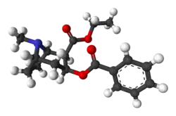 Cocaethylene (ethylbenzoylecgonine) is the ethyl ester of benzoylecgonine. It is structurally similar to cocaine, which is the methyl ester of benzoylecgonine. Cocaethylene is formed by the liver in small amounts when cocaine and ethanol coexist in the blood.[1] In 1885, cocaethylene was first synthesized (according to edition 13 of the Merck Index),[2] and in 1979, cocaethylene's side effects were discovered.[3]