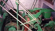 This process is mainly used when processing Coffea arabica.[3] After de-pulping, the beans are collected in fermentation tanks where bacterial removal of the mucilage takes place over 12 to 36 hours.[4] The fermentation phase is important in the development of the flavour of the coffee, which is partially due to the microbiological processes that take place. The emergence of yeasts and moulds in acidic water can lead to off-flavors like sour coffee and onion-flavour. However, wet processing is believed to yield higher quality coffee than the other processes since small amounts of off-flavors give the coffee its particular taste and "body".[5]