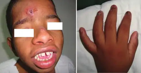 | Wide mouth / large lips | Most severe | Least common but variable | 2 years of age | Progressive | ||
