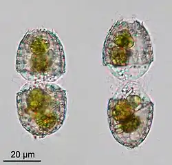 Coleps is a genus of ciliates in the class Prostomatea with barrel-shaped bodies surrounded by regularly arranged plates composed of calcium carbonate.[2]