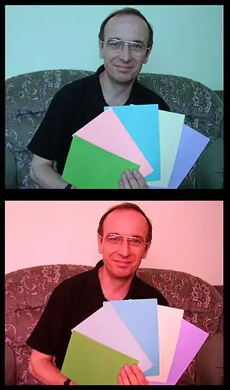 - ↑ "Discounting the illuminant" is a term introduced by Helmholtz: McCann, John J. (March 2005). "Do humans discount the illuminant?". In Bernice E. Rogowitz; Thrasyvoulos N. Pappas; Scott J. Daly (eds.). Proceedings of SPIE. Human Vision and Electronic Imaging X. Vol. 5666. pp. 9–16. doi:10.1117/12.594383.